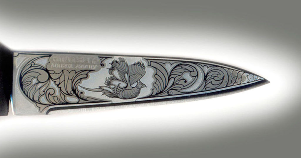 Одним из подвидов гравировки является травление. Его техника проста: металлическое изделие необходимо покрыть воском или смолой, затем по этому покрытию процарапывается рисунок, надпись или прочий декор. Далее, изделие помещается в раствор кислоты или щелочь, под действием которой процарапанные изображения протравливаются, а поверхность тускнеет.