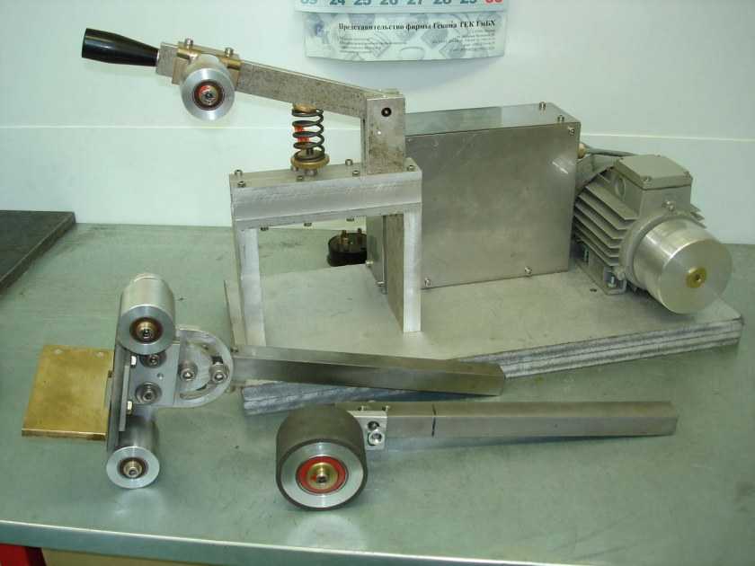 - Размеры и вид деталей (роликов, каркаса, на котором расположена шлифовальная лента, ложе для привода, расположение крепежей).
