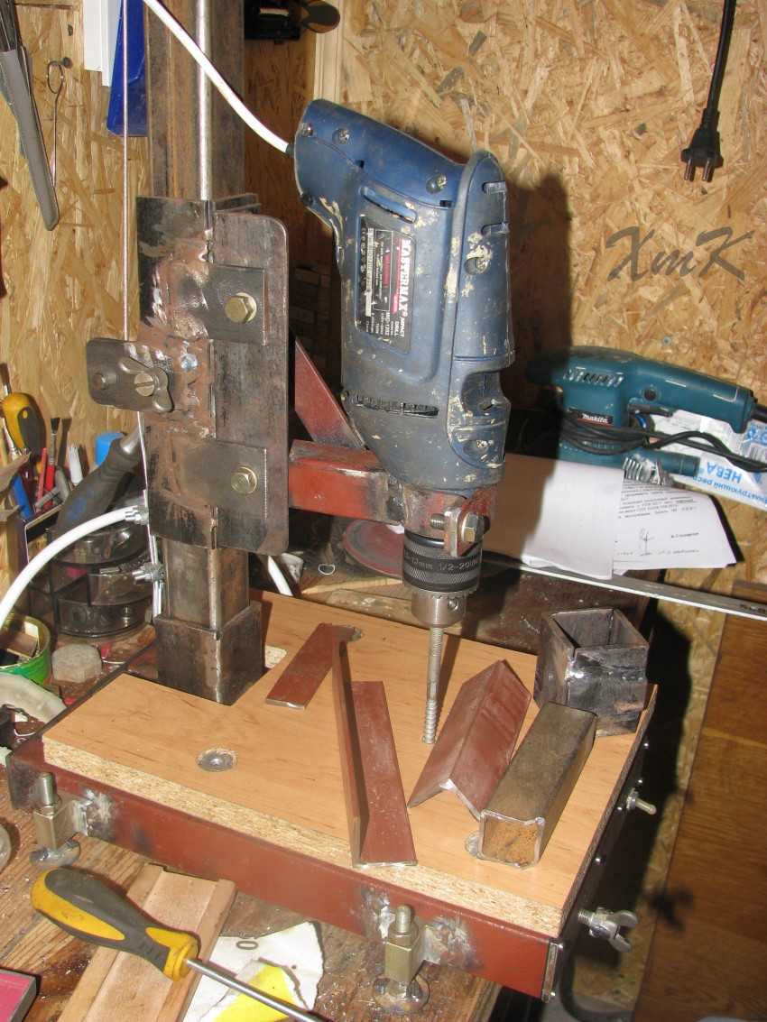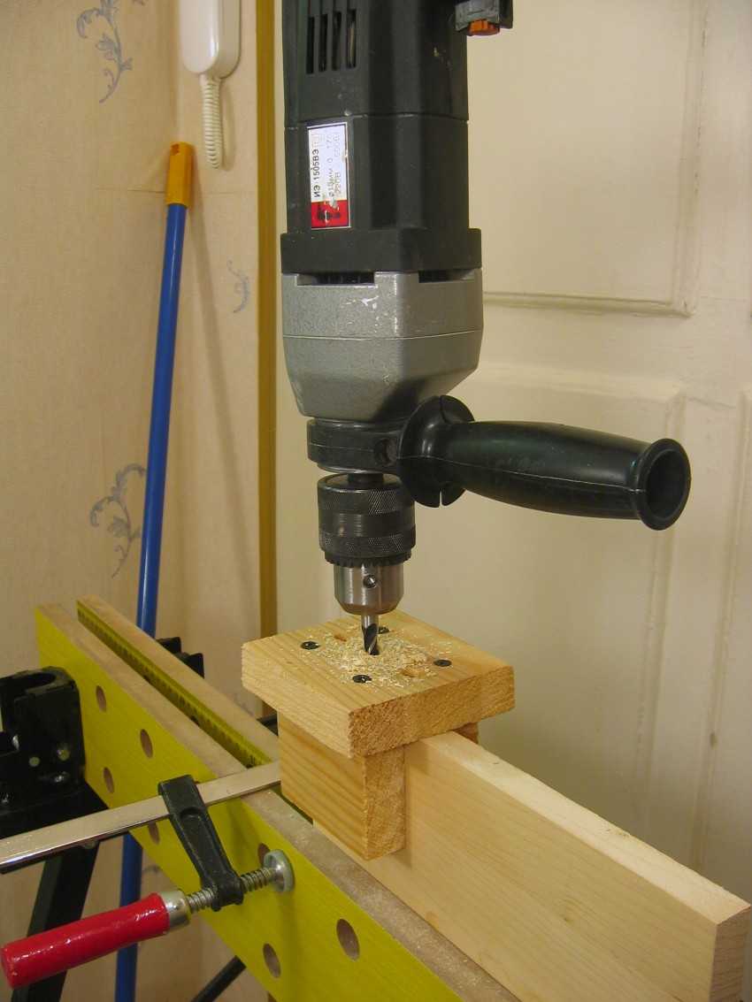В случае применения в роли силовой установки электрической дрели, нужно изготовить Г-подобную подпорку.