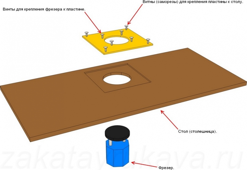 Схема конструкции типового фрезерного стола для ручного фрезера