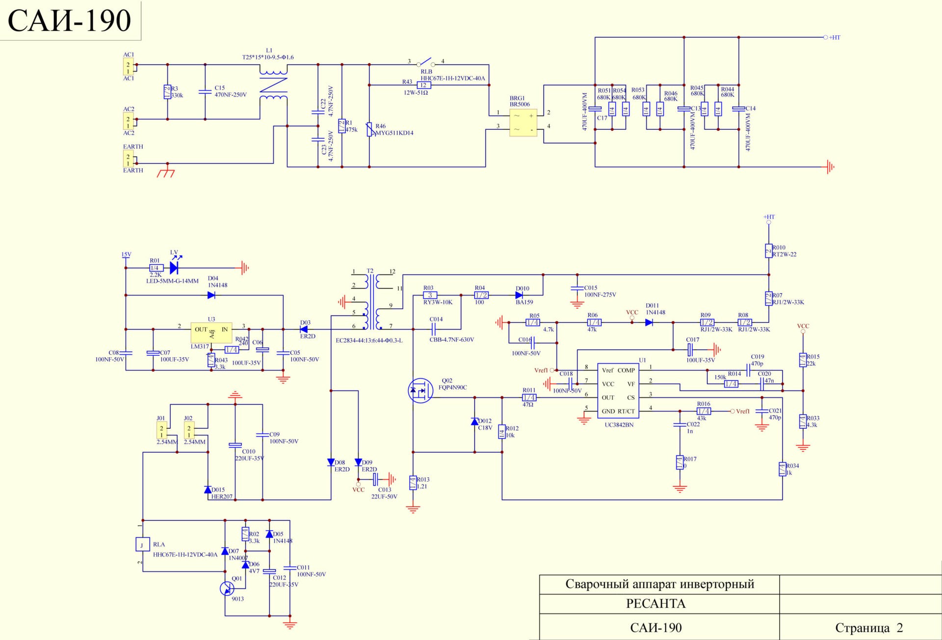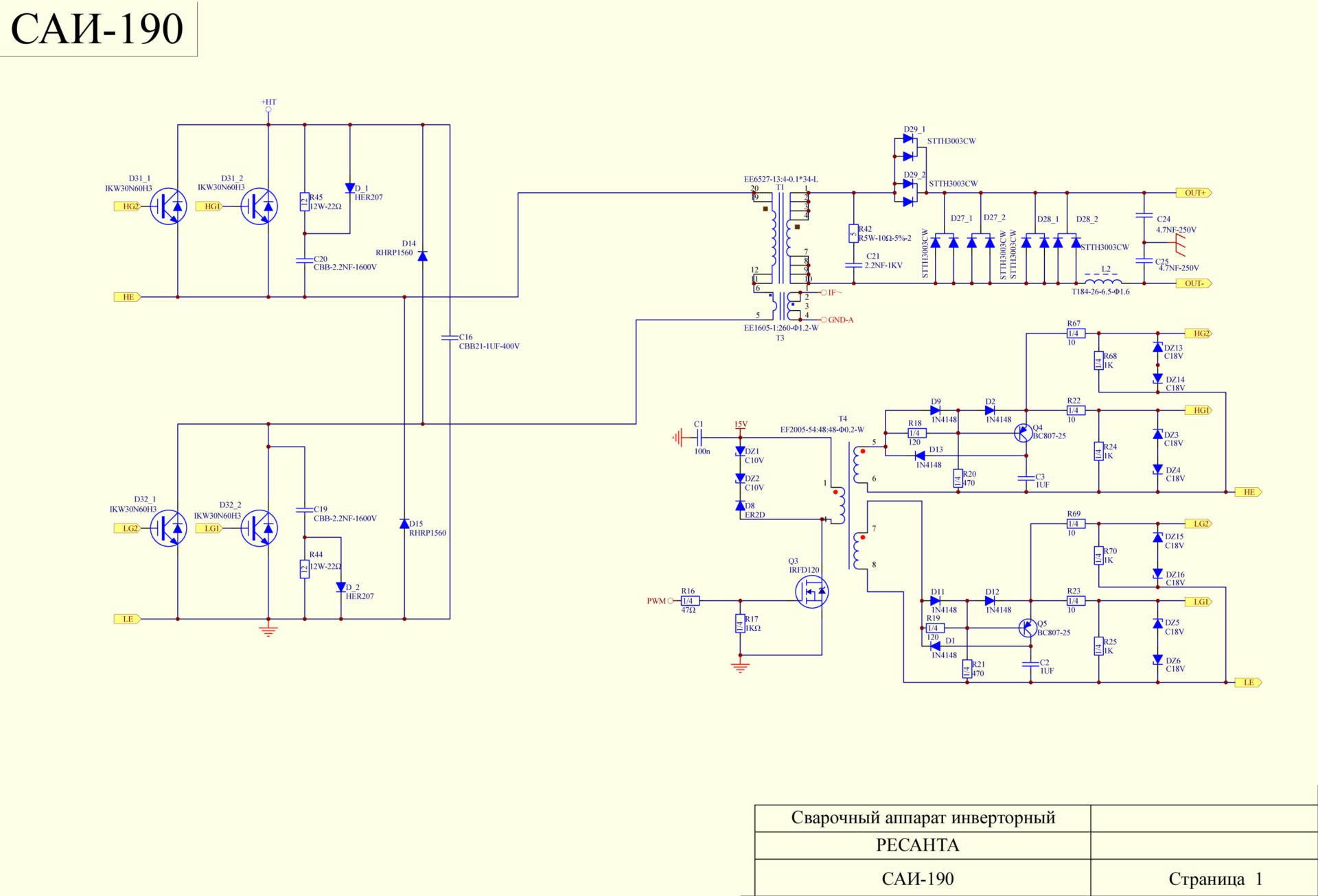 Схема 1 — Электрическая схема сварочного инвертора ресанта САИ 220.