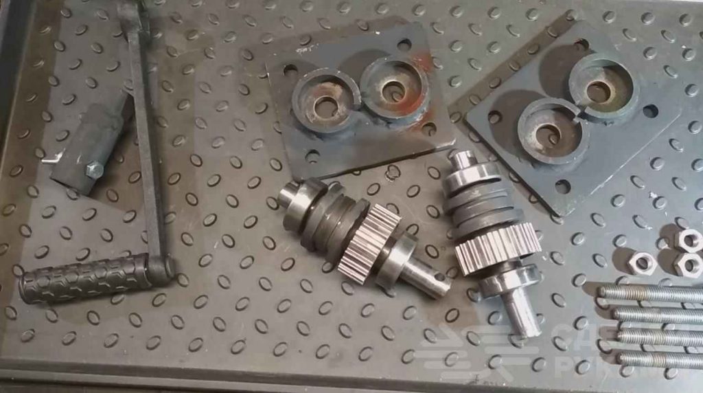 И первым делом автор купил в автомагазине две шестерни для коленвала привода ремня ГРМ с внутренним диаметром 22 мм. Исходя из размеров шестерней, нужно выточить на токарном станке (или заказать токарям) два вала.