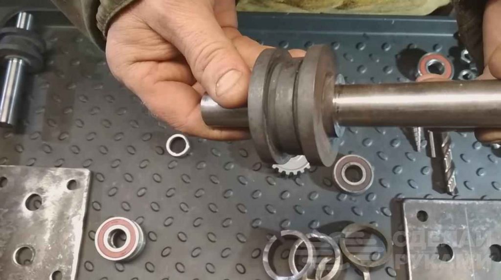Далее на трубогибочный агрегат монтируют рабочие валы: два немного выше столешницы рабочего стола, третий – над ними. Для фиксации подшипников применяются полумесяцы из 4-х миллиметрового металла.
