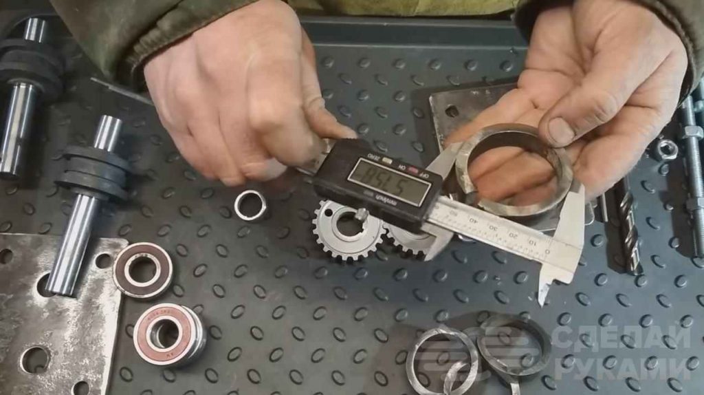 Далее к пластинам надо приварить обоймы для подшипников, а на валы насадить по два подшипника и по шестеренке. После этого можно приступать к сборке данного приспособления.