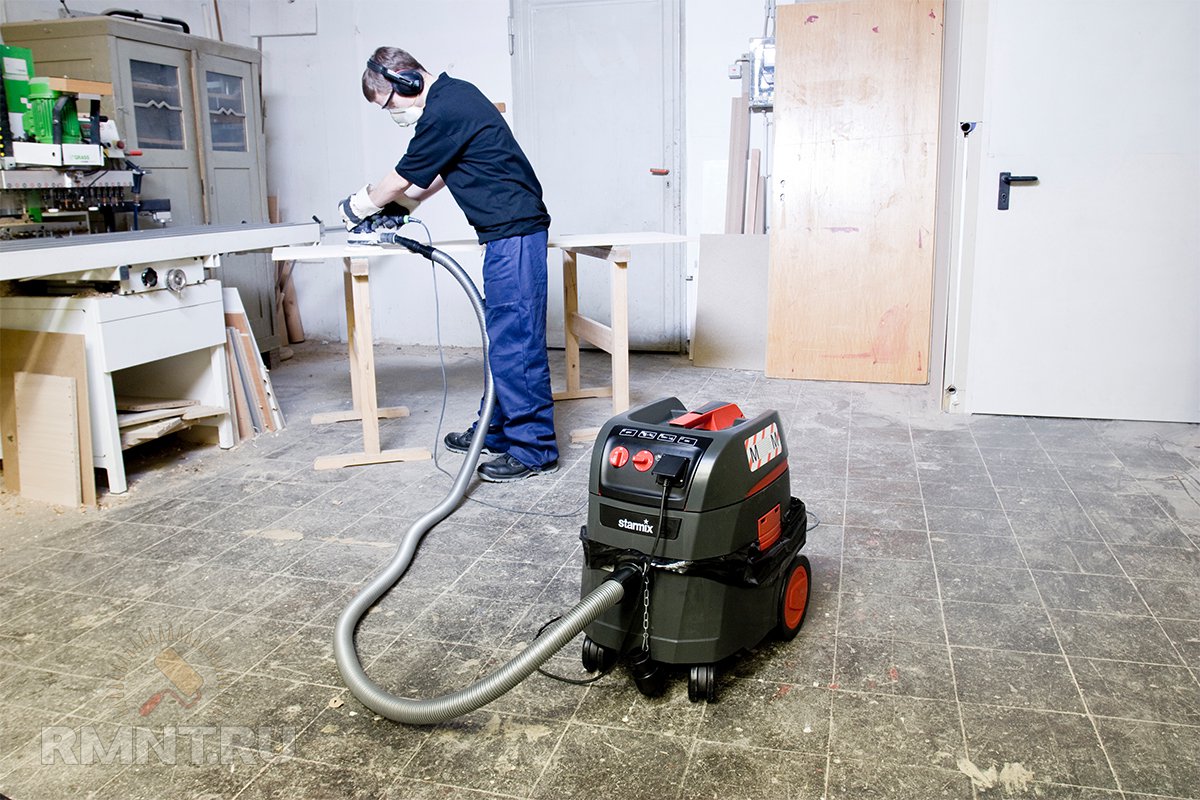 Сначала в работу включается пылесос, затем для нужных целей применяется строительный инструмент. В результате выполняемое действие, допустим, распил доски электрическим лобзиком, проходит без выброса стружки и мелкой пыли в окружающую среду.