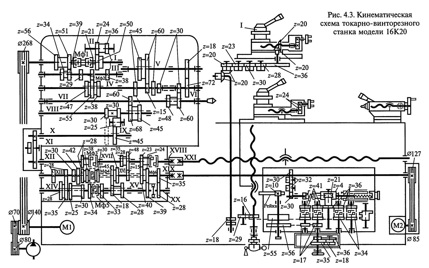 Кинематическую схему используют для того, чтобы понять связь и взаимодействие между основными элементами станка.