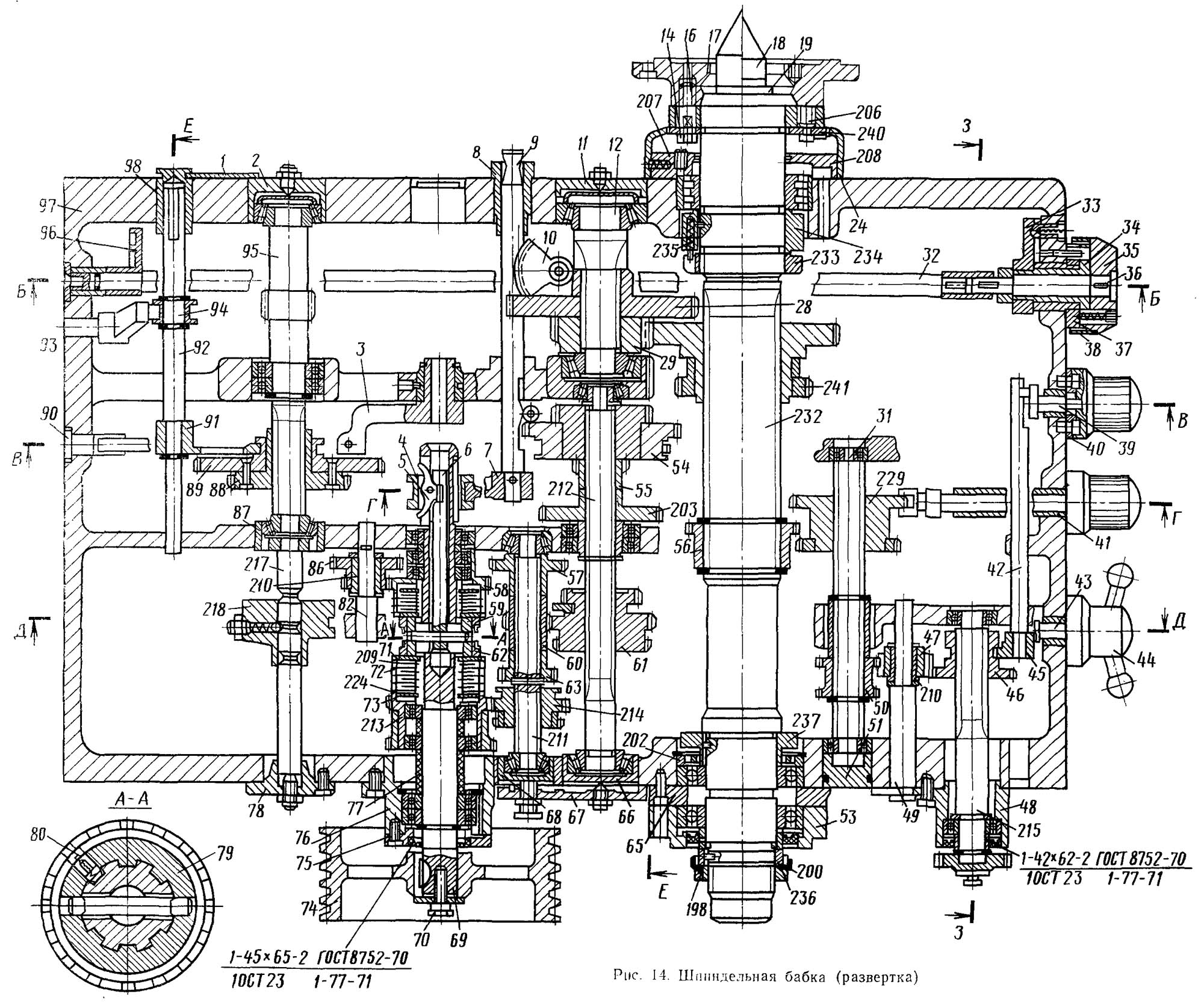 На станке установлена шпиндельная бабка 16А20Ф3.025. имеющая три диапазона с соотношением 1,25:1; 1:2; 1:5,8; переключаемые вручную.