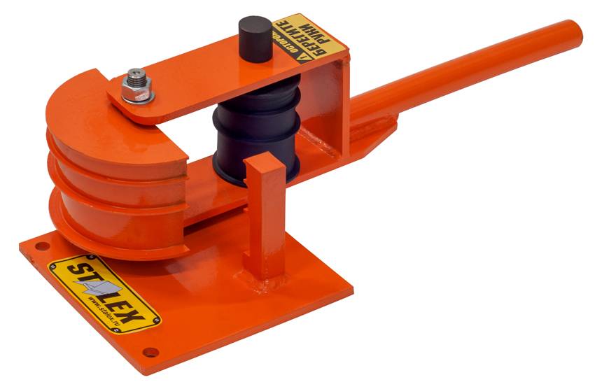 С помощью ручного трубогиба можно сгибать кольца и дуги. Подобный аппарат весит относительно немного (порядка 65 кг), благодаря чему его можно транспортировать к месту работ при небольших металлоконструкциях (тех же теплицах, воротах, навесах). Вот основные характеристики материалов, которые могут обрабатываться ручным приспособлением: круглая труба с сечением 3 сантиметра, квадратная – 4х4 сантиметра, прут – 1,6 сантиметра, полоска – 4х1 сантиметр и, наконец, квадрат – 1,6х1,6 сантиметра.