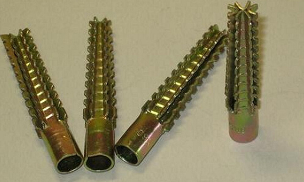 Такой элемент имеет форму стержня, который вворачивают или забивают в рабочую поверхность. В этом случае нагрузка равномерно распределяется по всей площади крепления. При вкручивании шурупа кромочные участки расщепляются и анкер приобретает форму бабочки.