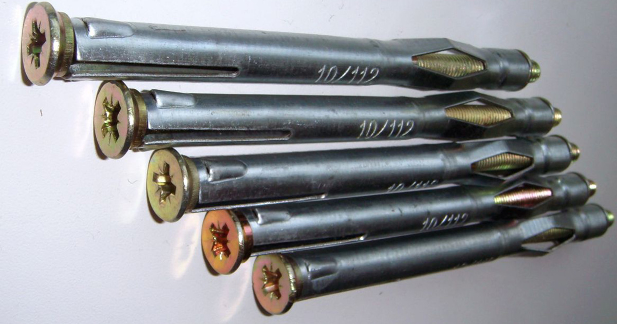 Первый вариант встречается чаще всего и считается самым дорогим. Его используют при монтаже профилей, установке навесной техники и мебели, фиксации различных трубопроводов. Широкое распространение подобный крепеж получил в пожароопасных пространствах.