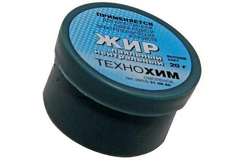 Для приготовления нейтрального паяльного жира применяется смесь канифоли и стеарина. Она успешно растворяет имеющуюся оксидную пленку. Пайка с ее применением осуществляется с меньшими проблемами. У припоя увеличивается текучесть, что дает возможность его попадания в различные щели и неровности поверхностей. Благодаря хорошей растворимости такую пасту легко удалить с поверхности после окончания процесса.
