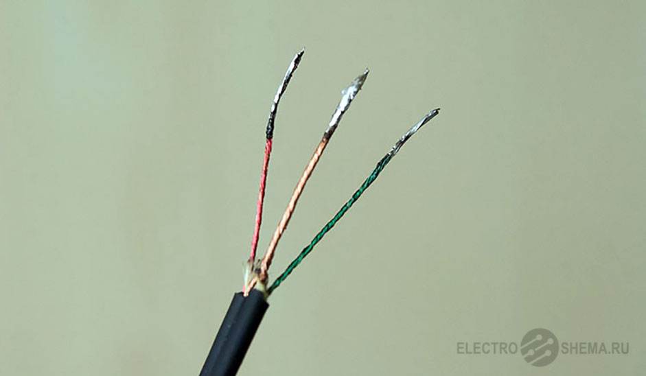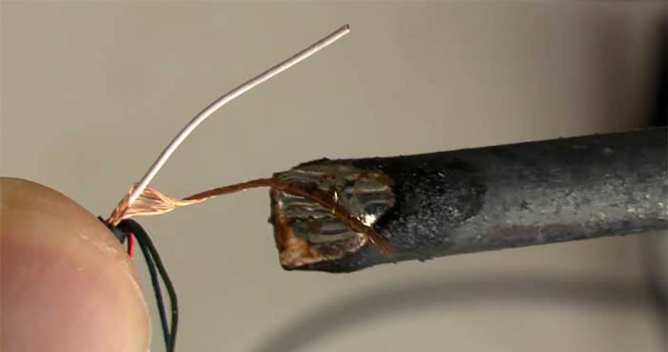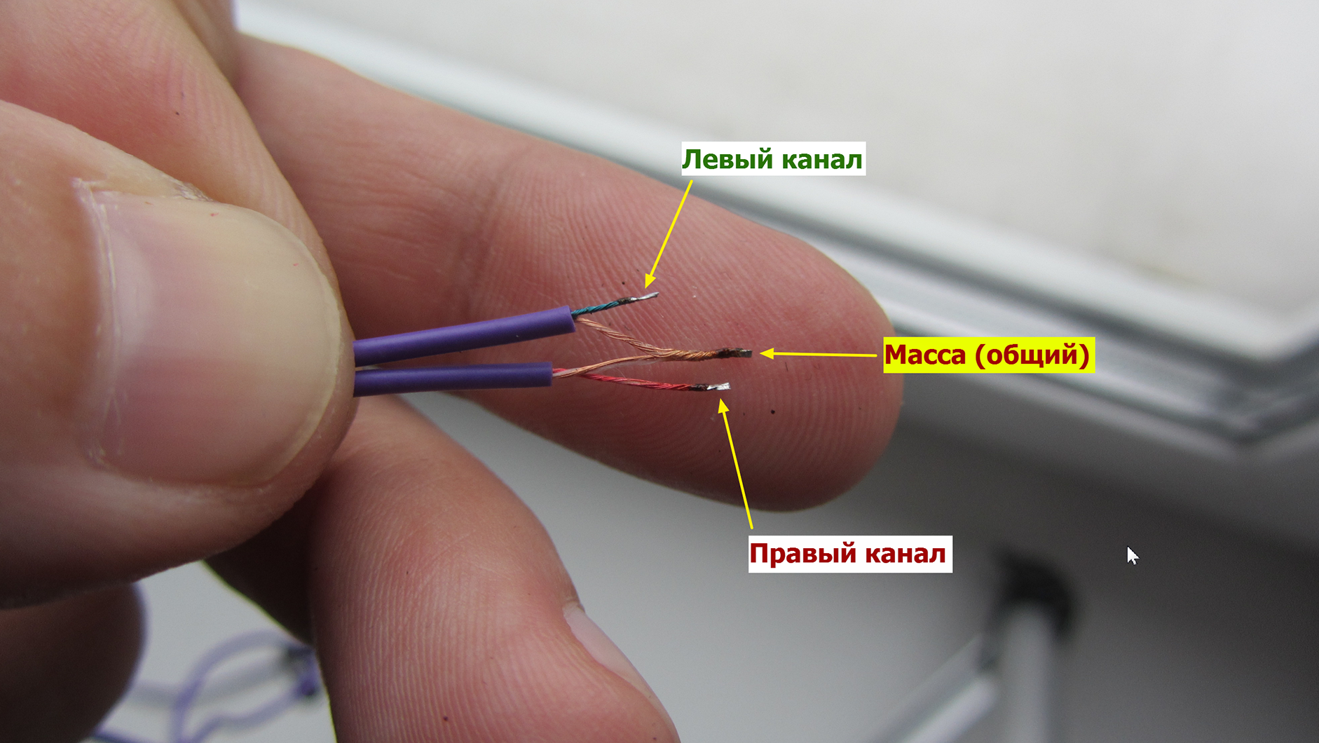 - как уже упоминалось выше, это могут быть и три провода, два из которых каналы, а один — общий экран, в этом случае просто снимаем с них изолирующий лак;