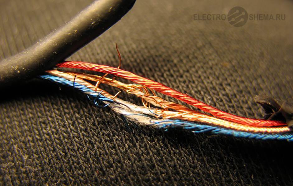 - Свободный конец разделяется на отдельные элементы. Каждый провод зачищается.