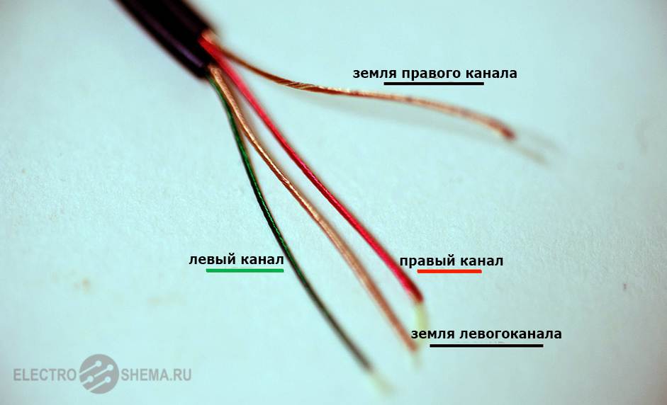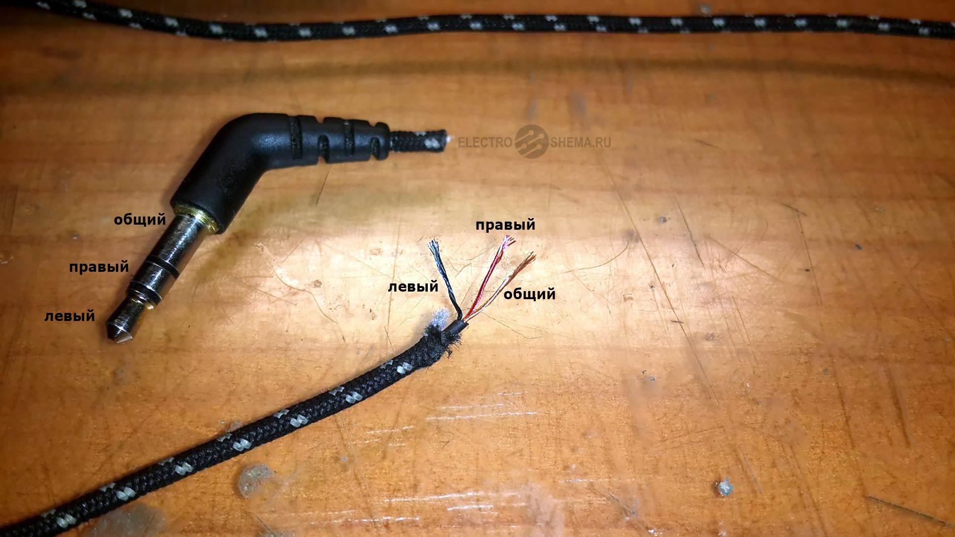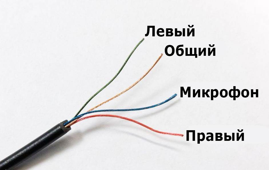 Если наушники выполняют роль гарнитуры, оттенок и количество элементов могут отличаться. В них обычно находится 4 провода: для левого и правого аудиоканала, общий (-) и для видеоканала.