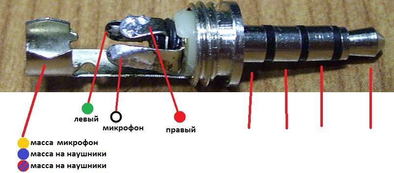 У всех гарнитур, выпущенных после 2012 года, порядок крепления проводов от края штекера такой: