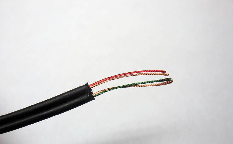 - 1 или 2 провода в лаковой оболочке без оплётки (по 1 на канал) — заземление;