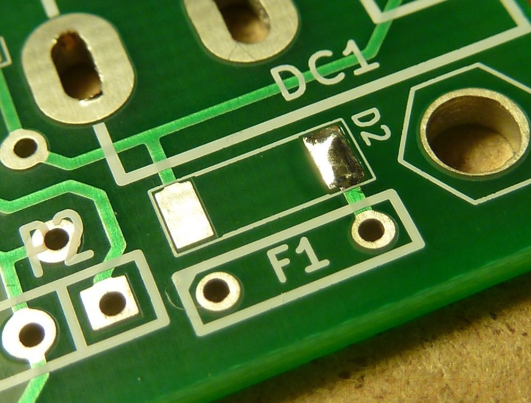 На рисунках показано, как впаивается диод в корпусе 1206. Последовательность шагов с другими деталями такая же, как и выше.
