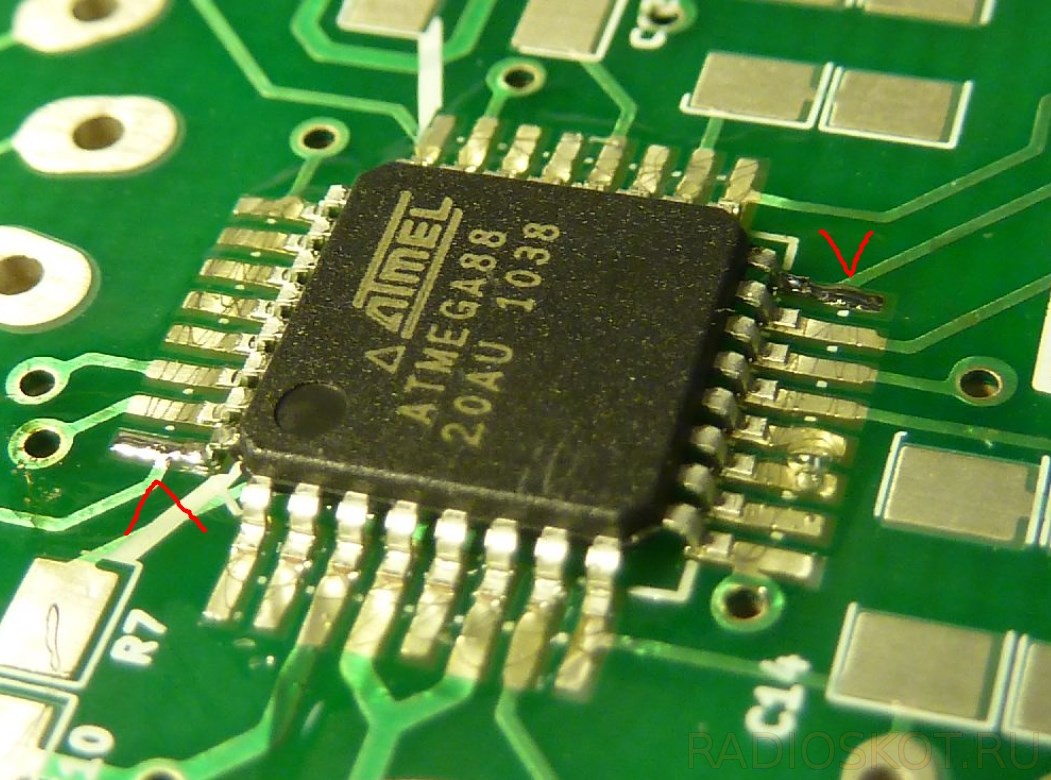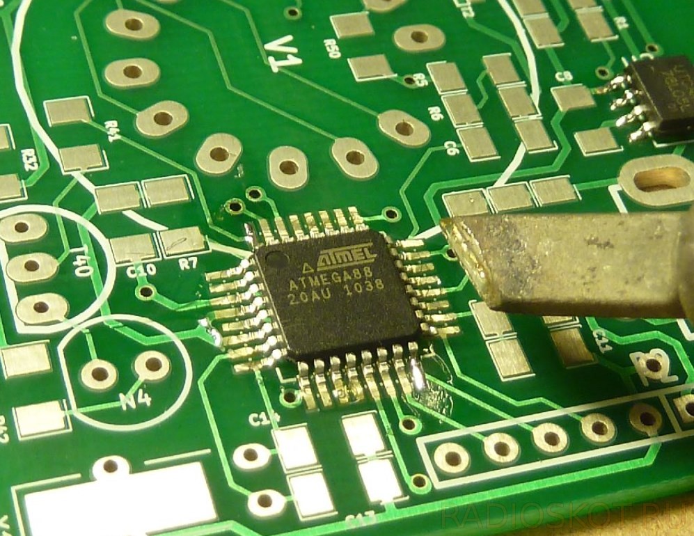 - из-за опасности перегрева радиодеталей, а также отслаивания токоведущих дорожек из-за перегрева платы паяют не более 2 секунд;