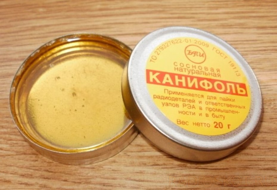 Канифоль – это легко плавящаяся смола, благодаря которой легче паять, потому что олово лучше растекается по поверхностям. Канифоль хорошо растворяется в спирте, например в салициловом спирте – можно использовать его и растворить смолу, а затем аккуратно нанести кистью на плату, которую будете паять, и тем самым значительно облегчите работу.