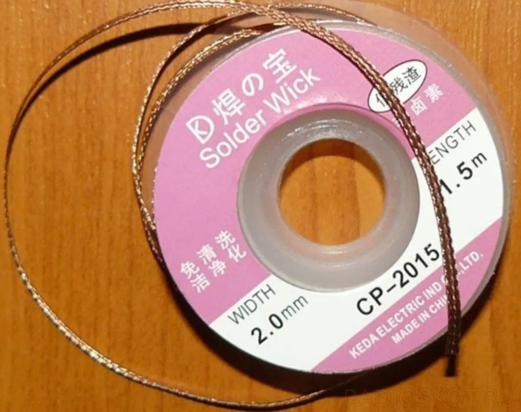 Оплетка для паяния – это плетеные медные провода, которые при наложении на горячее олово на распаянных элементах убирают на себя излишки.