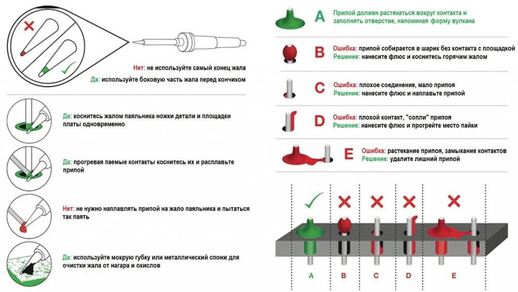 В конце хочу привести картинку, немного похожую на инфографику на тему как научиться правильно паять. Эти основы пайки для начинающих я переводил сам, так что пользуйтесь на здоровье.