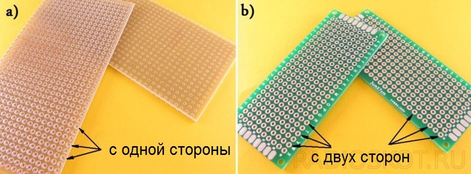 Универсальные платы: а) односторонние – точки пайки только с одной стороны; b) двусторонние – точки пайки с двух сторон