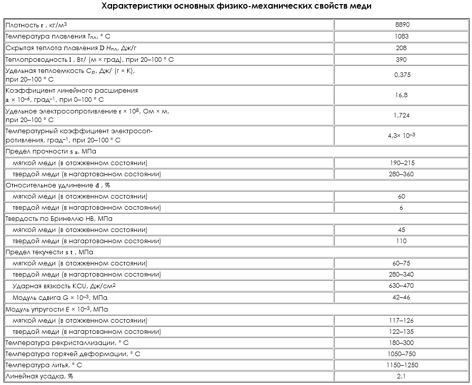 Основные свойства меди