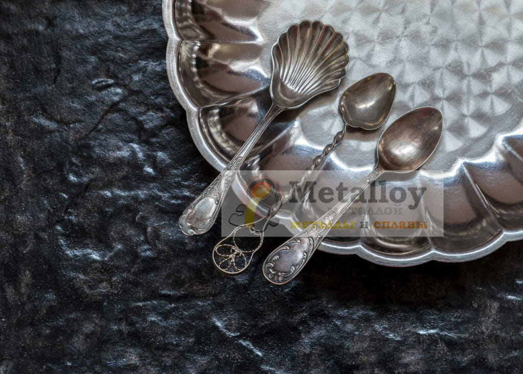 Мельхиор представляет металлический сплав серебристого цвета из нескольких металлов.
