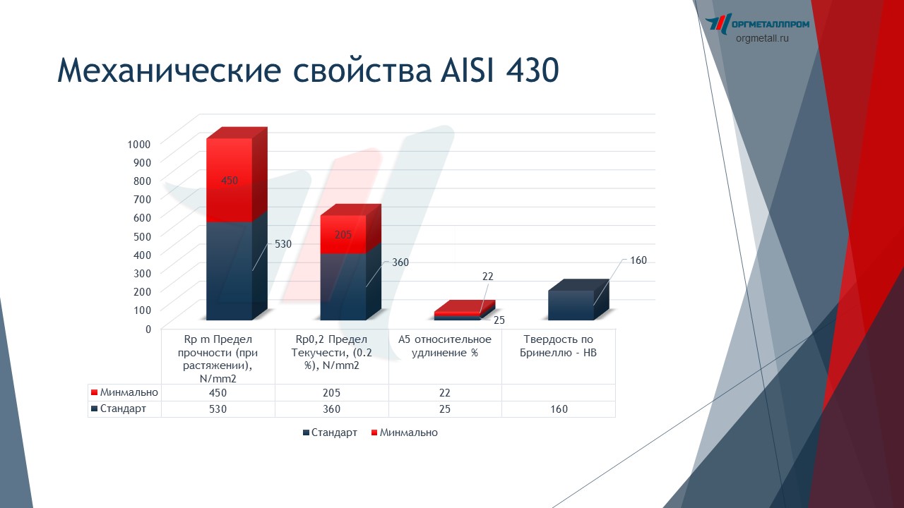 - AISI 430 обладает большей стойкостью к воздействию кислотных и щелочных сред.