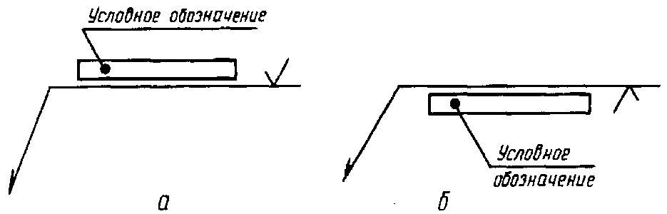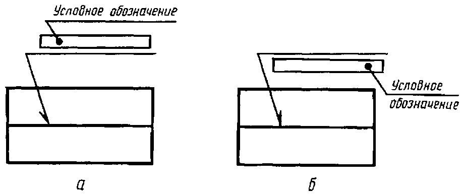 Маркировочные знаки условно чертят над (под) полочкой выносной стрелки: