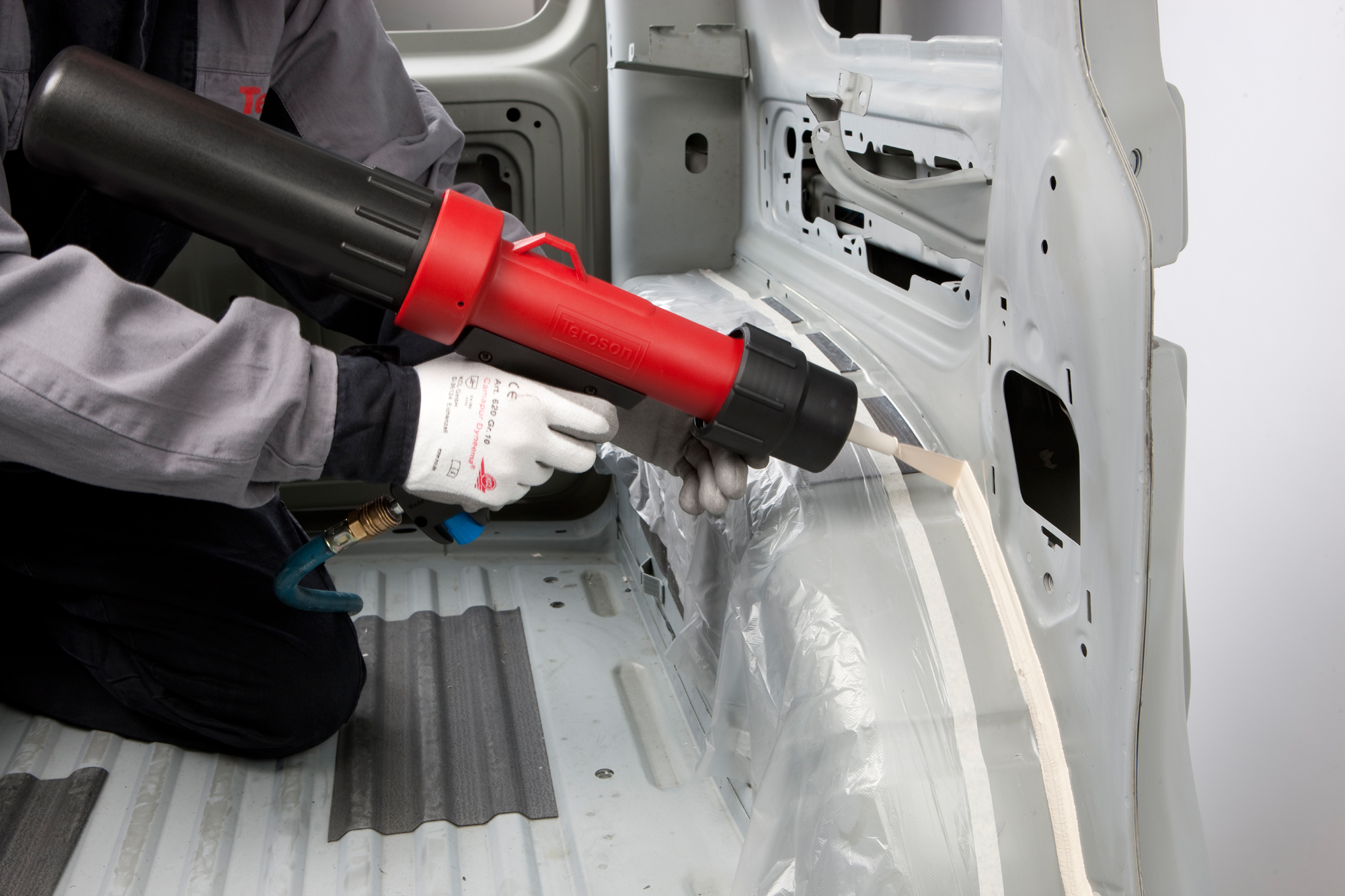 Пистолет позволяет проводить нанесение наиболее удобно и сделать ровный слой с помощью него проще. Стандартно их выбирают, чтобы закрыть шовные участки на капоте, дверях, в багажнике, моторном отсеке.