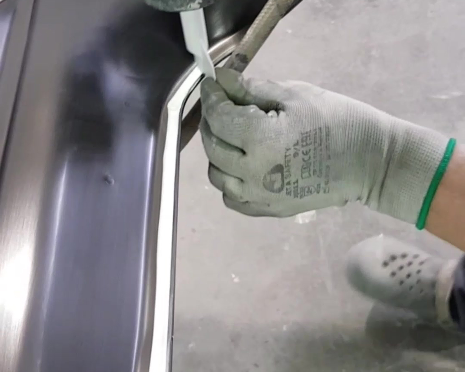 - Наносится грунтовочный раствор для металлических поверхностей, когда подобный этап указан в инструкции к герметику;