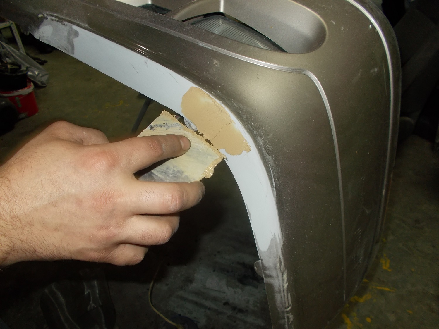 - ремонт автомобиля и его составляющих деталей. В том случае, если металлические детали авто были поцарапаны, побиты и поломаны – используется заштукатуривание как метод выравнивания и придания ровного вида;