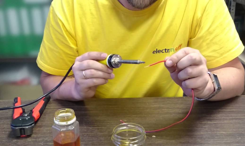 - Разогретым луженым жалом паяльника расплавляют канифоль.