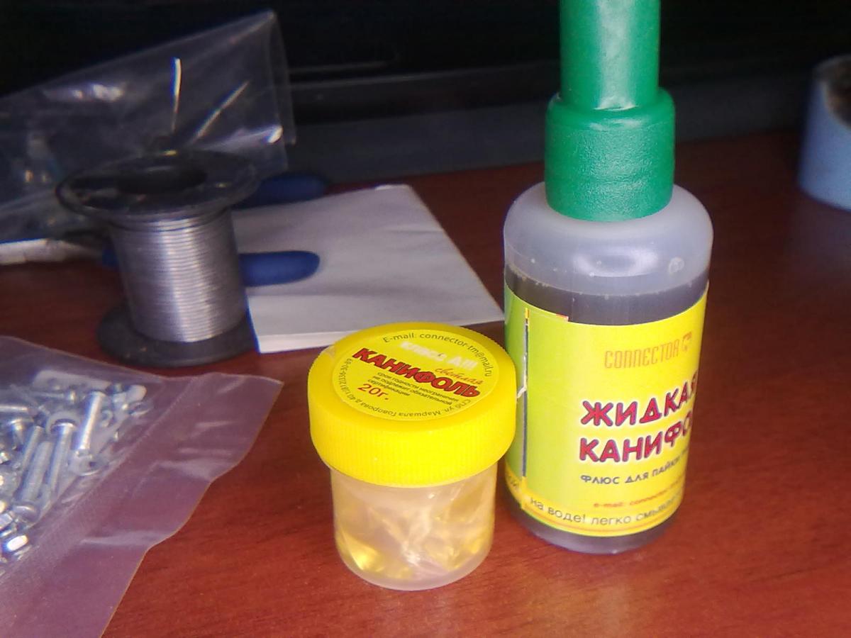 Можно делать и гель. Для этого смешать канифоль с вазелиновым маслом. После растворения можно заправить составом шприц без иглы и наносить флюс или использовать натирание поверхности густым составом.