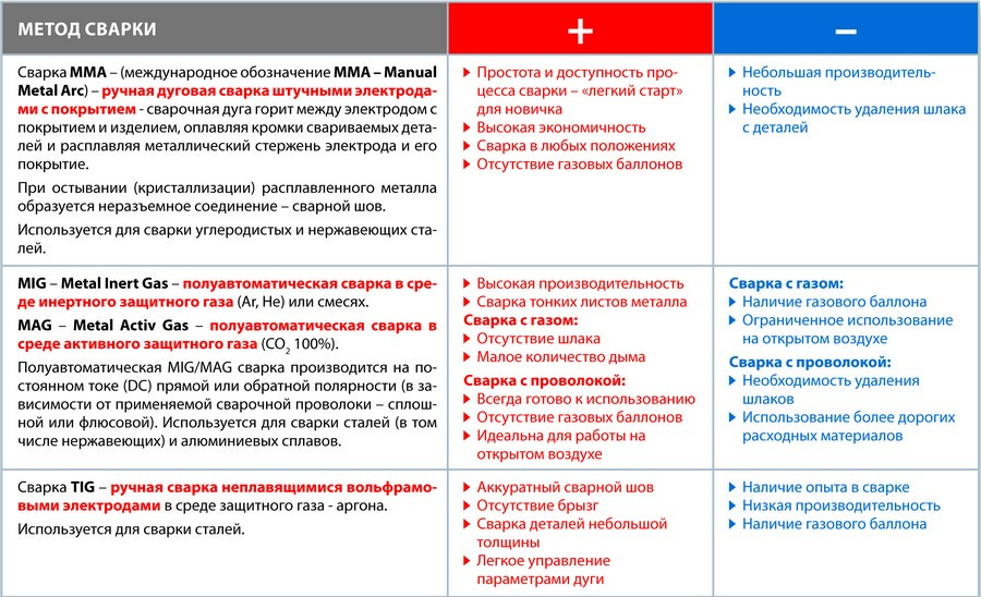 Сравнительная таблица различных методов сварки (нажмите для увеличения)