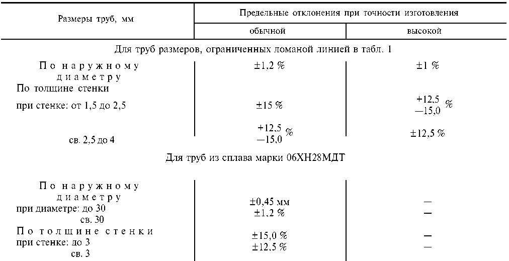 толщину стенки за минусовые предельные отклонения, указанные в табл. 2.
