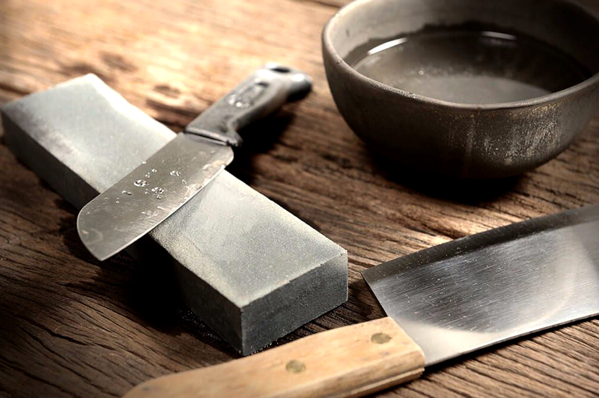 На мелком абразиве лезвие доводится с периодическим смачиванием в воде, важно не допустить перегрева металла. Окончательная доводка делается на точильном камне высокой зернистости. Камень перед работой на 2-3 часа замачивается в воде, чтобы обеспечить легкое движение и образование абразивной пасты на поверхности