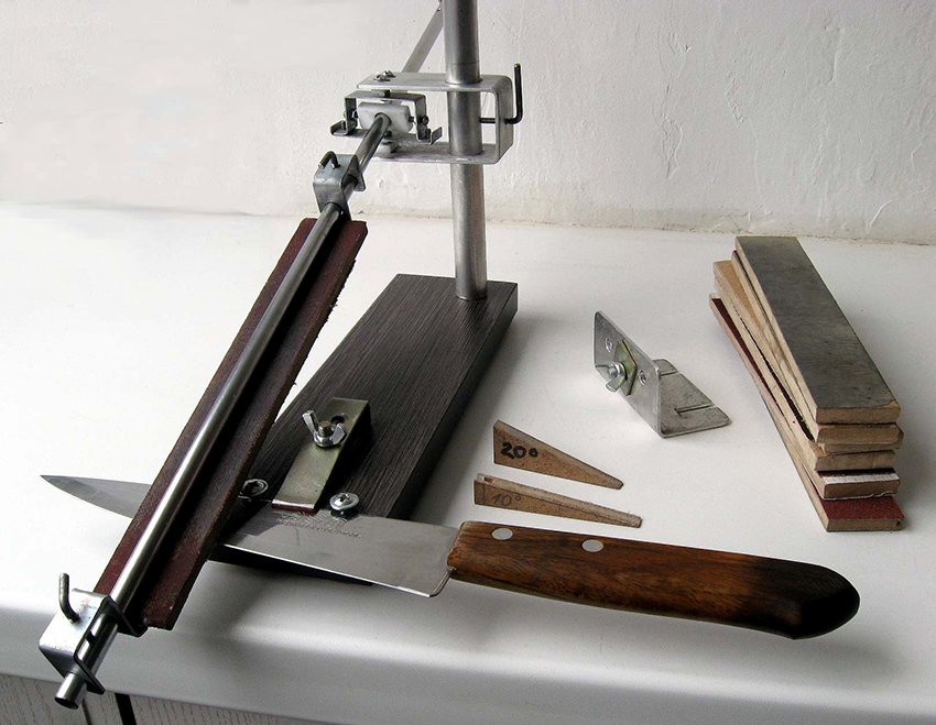 Необходимо следить, чтобы угол между ножом и бруском был одинаковый в процессе заточки
