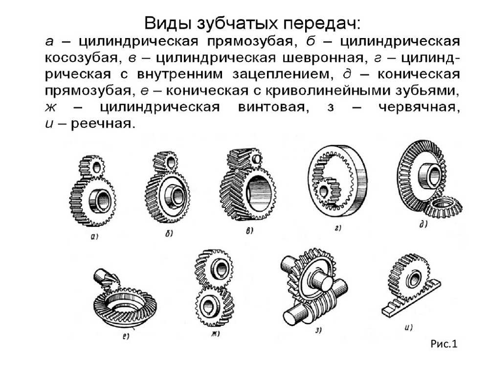 - по геометрии зуба в поперечном сечении (форма) и способов контакта между собой: прямой – контактирует по точке; вогнутый – контактирует по линии; роликовый – контактирует с гребневым роликом.