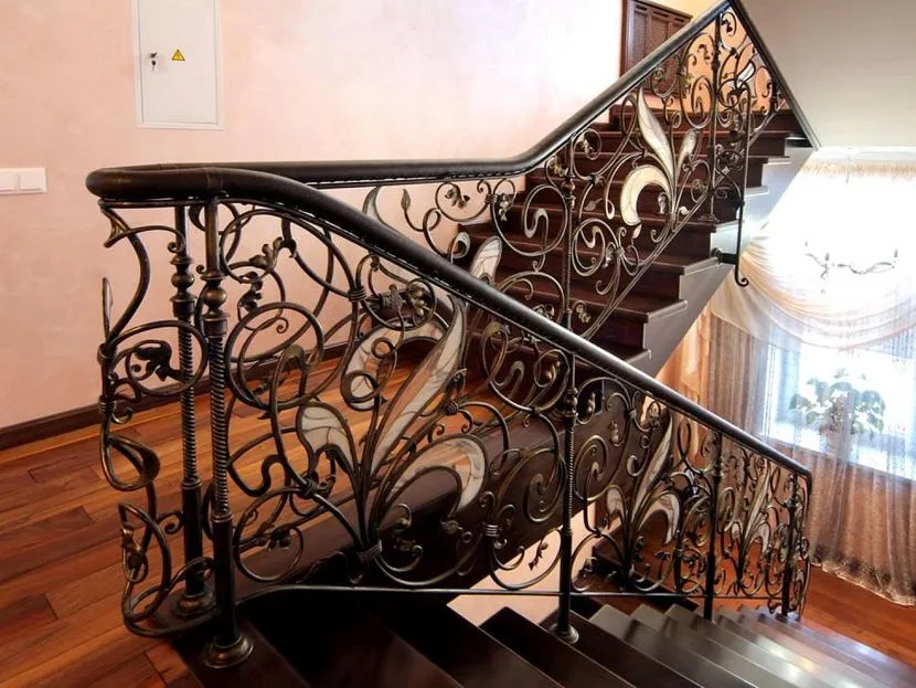 Кованая лестница со сложным растительным орнаментомИсточник stroikairemont.com