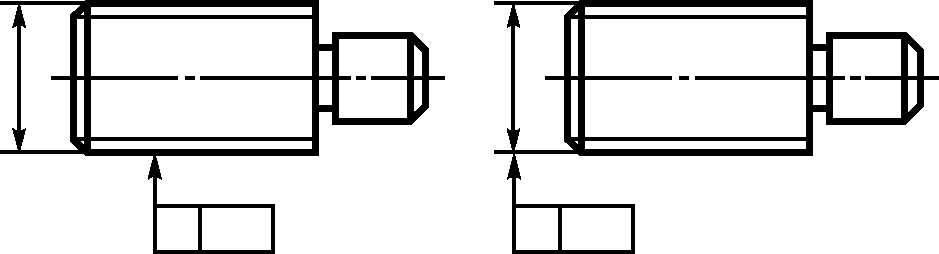Графические символы и числовые значения допусков формы и расположения помещают в прямоугольных рамках, которые соединяют выносную линию со стрелкой с контурной линией поверхности, если отклонение отсчитывают от нее; либо с размерной линией параметра или с осью симметрии, если отклонение относится к общей оси.