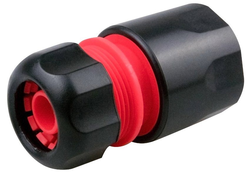 - Для шлангов диаметром 1/2″ разные производители предоставляют быстросъемные соединители из ударопрочного пластика. Кроме своей основной функции быстрого и надёжного соединения шланга с переходником, адаптером, тройником, поливочной насадкой, они могут быть дополнительно оснащены запирающим механизмом. В отдельных моделях имеется автостоп. Пустить воду можно, надев поливочную насадку, и перекрыть, если её снять. Цена пластикового быстросъемного соединителя начинается от 49 р., и доходит до 217 р. Более дорогие модели имеют защиту от перегиба шланга. В некоторых имеется шаровой поворотный механизм.