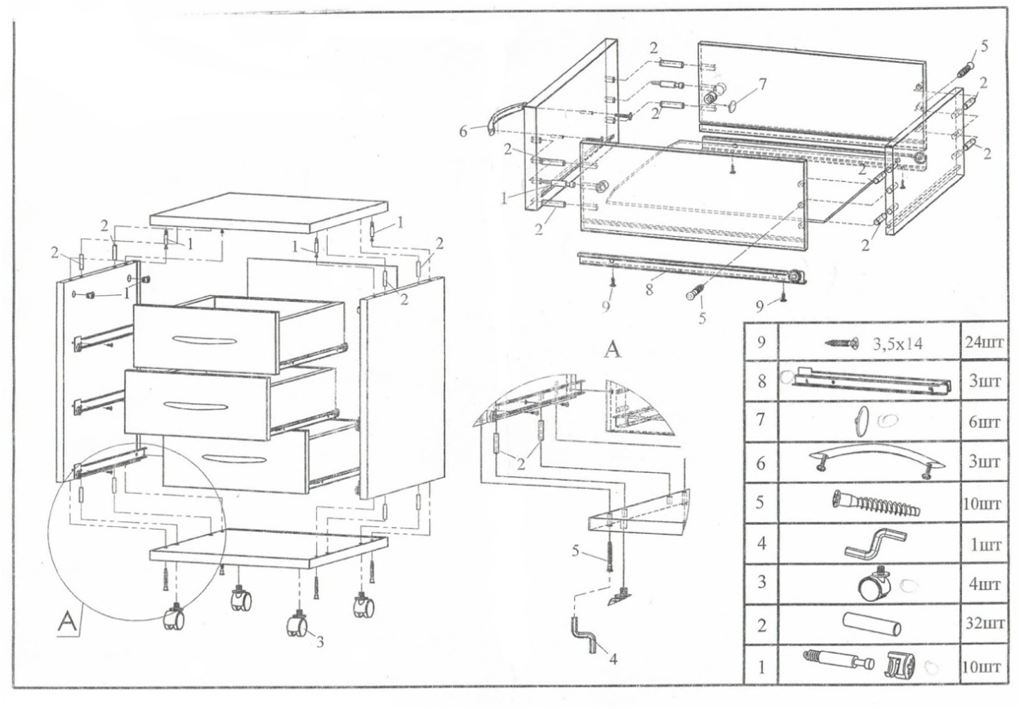 Сборку ящика с эксцентриковой стяжкой рекомендуется выполнять в этой очередности: