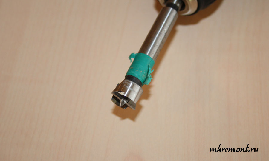 С помощью этого сверла делаем отверстие глубиной равной толщине эксцентрика это порядка 12,5 мм.
