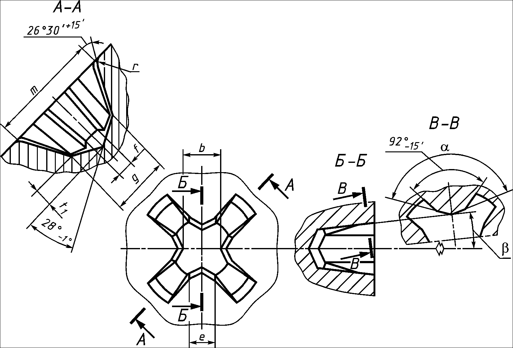 Примечание. Для шлица с номером 0 вместо угла а должно быть округление радиусом не менее 0,25 и не более 0,36 мм.