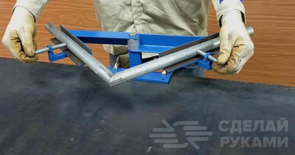 Угловая струбцина, изготовленная своими руками, или заводская устроена следующим образом. Не считая её модификаций, позволяющих сварить две обычные или профильные трубы под углом в 30, 45, 60 градусов или любым другим значением, данный инструмент отличается размерами под разную ширину труб. Чем толще прижимные кромки, тем толще и труба (или арматура), с помощью которой можно соединить её части. Дело в том, что свариваемый металл (или сплав) выгибается при нагревании, которым неизбежно сопровождается любая сварка.
