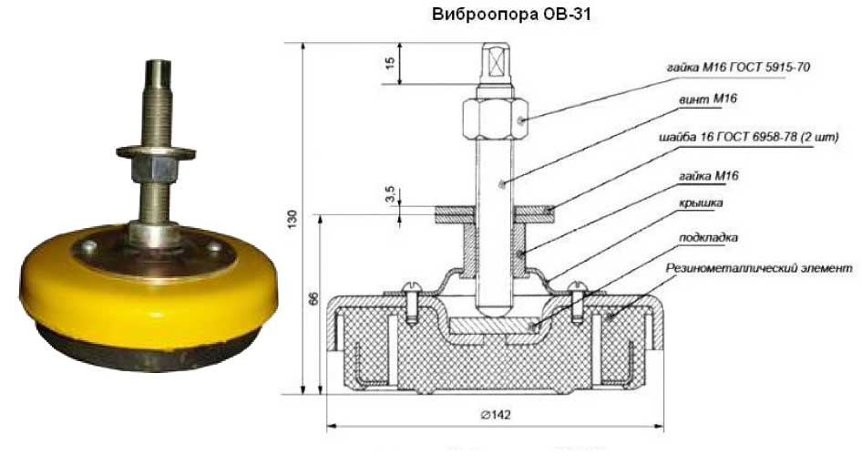 На такое изделие станет 4 опорные точки оборудование массой от 1 до 18 тонн. У агрегатов более лёгких амортизатор не работает из-за жёсткости. А нагрузка более тяжёлая будет выдавливать его в корпус крышки до упора пола. Количество ОВ-31-М следует увеличить.